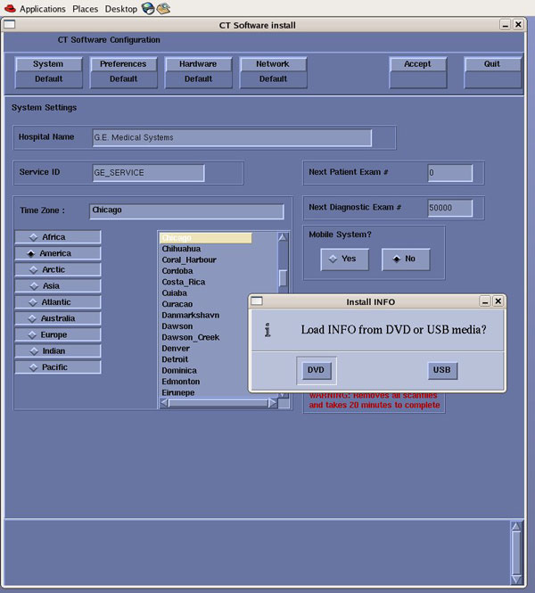 - Confirm that a current System State Backup Media is on site. If unsure of the status of the System State, execute System State Save Restore procedure found in the Software Chapter of this manual. Save a System State Backup to either DVD-RAM or USB Media.
