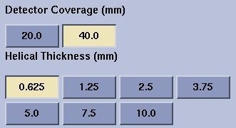 - Create scanRx using 40mm Detector Coverage and 0.625mm Helical