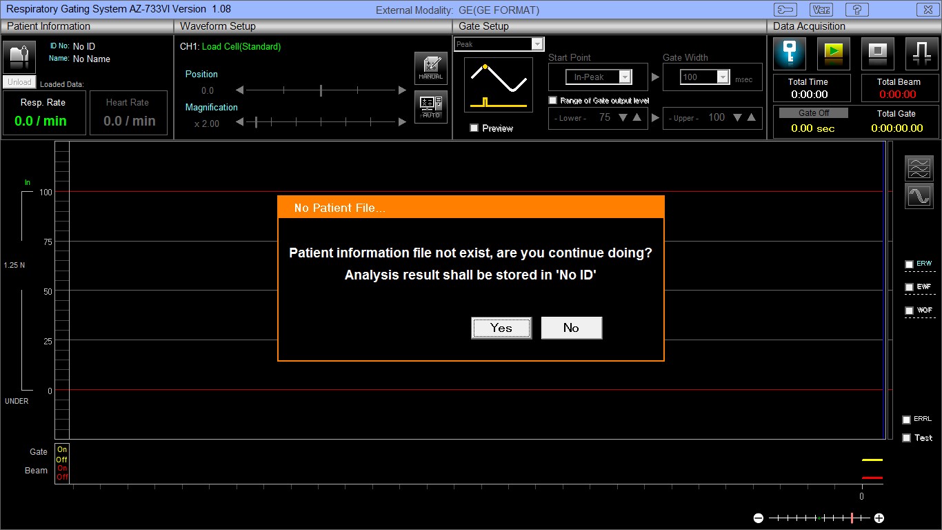- If the Customer is not going to use the system, exit the AZ-733VI Respiratory gating application.