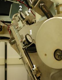 8. Mount dial indicator gauge on X-Axis mounting bracket, located on tube assembly left face, with gauge's probe resting perpendicular to tube casting's left face (Item 2 in Figure 1)