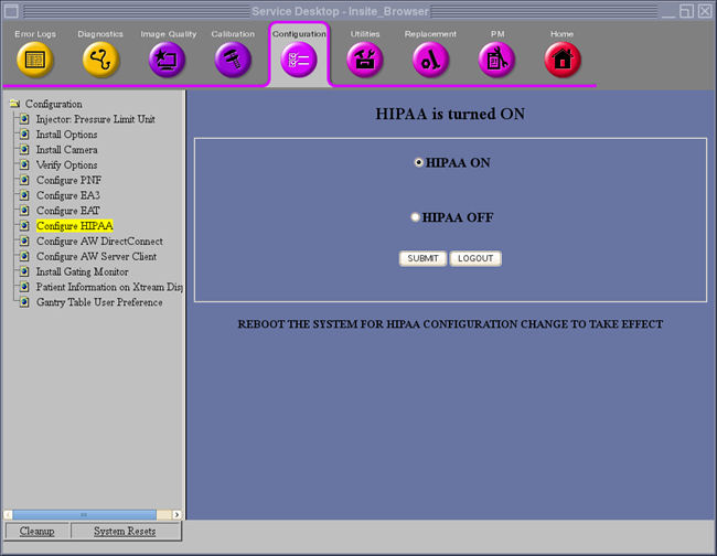 - Reboot the system to for HIPAA configuration change to take effect.