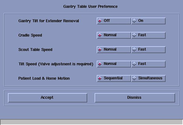 Figure 2. Gantry Table User Preference Window on Revolution EVO 18HWxx.x or later software