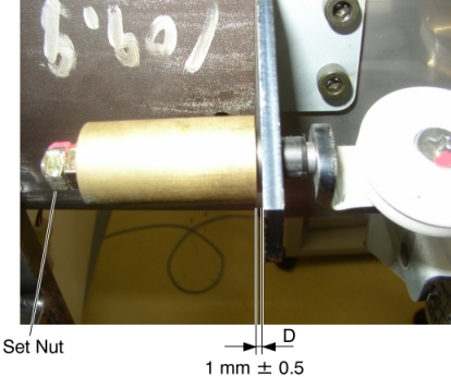14. Turn the adjusting nut in the CW direction until the distance D is 1 ± 0.5 mm, and tighten the set nut.