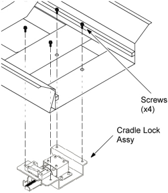 1. Remove the Cradle Lock Assy by unscrewing its 4 screws.