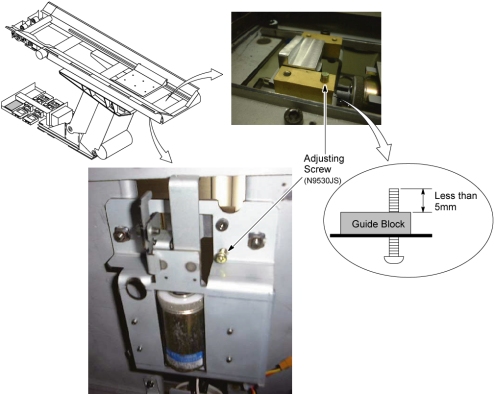 Verify that the end point of the screw sticked out of guide block is less than 5mm.