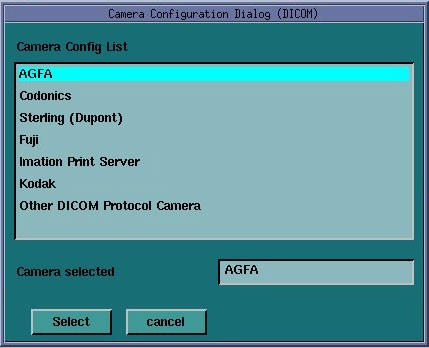 2. A dialog window for the camera type (POSTSCRIPT* / DICOM) appears.