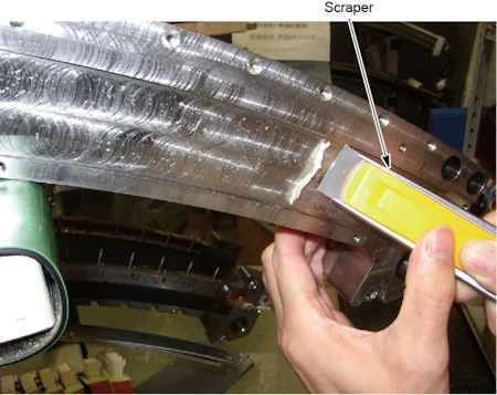 - Scrape the softened (macerate) adhesive off using a scraper.