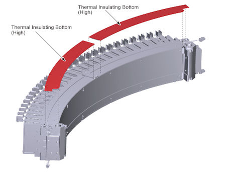 - Attach the thermal insulating bottom (high and low) to the bottom collimator rail.