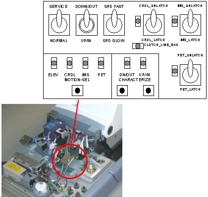 - Using the Service Switches, move the table to the mechanical DOWN-limit position.
