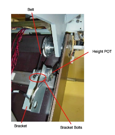 - While applying proper tension to the POT belt, secure the two POT bracket bolts.