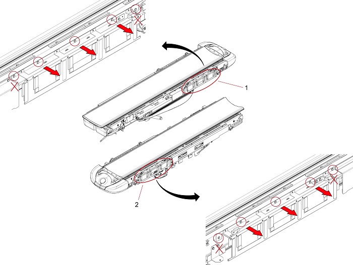 - Remove two (2) mounting brackets (item 1 and 2 in Figure 25) by removing four (4) screws.