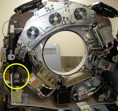 1. Make sure the Axial Drive, HVDC and 120 VAC switches on the gantry’s Service Switch Panel are OFF.