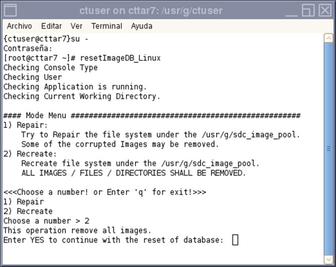 Type: [root@hostname] resetImageDB_LinuxENTER