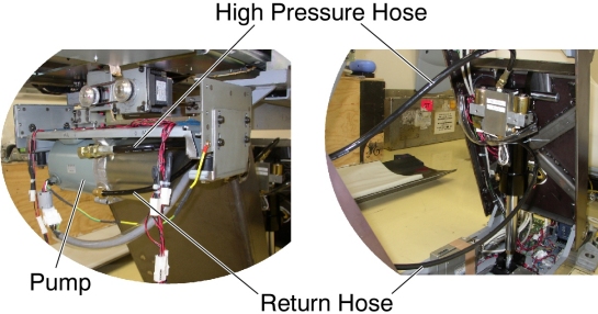 12. Connect the high-pressure hose, one end to the cylinder, and the other end to the pump, then tie-wrap the hose in place.