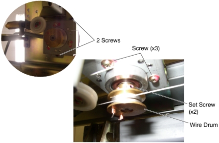 - Loosen 2 set screws on the wire drum, then remove the wire drum from the IMS Encoder.