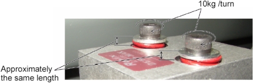 If the value is out of specification, adjust the bearing tension by turning two set screws on the bearing block evenly (10kg/turn).