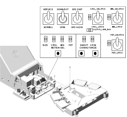 7. Using the Service Switches (ACTION), move the IMS until it is set outside of the characterization points on the IMS frame rail.