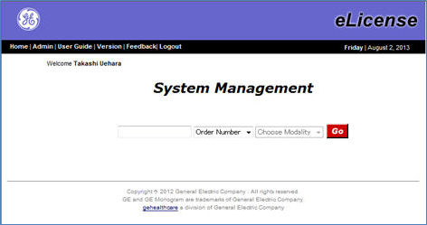 2. On your laptop PC, connect to the eLicense website at http://elicense.gehealthcare.com