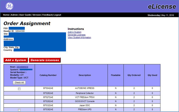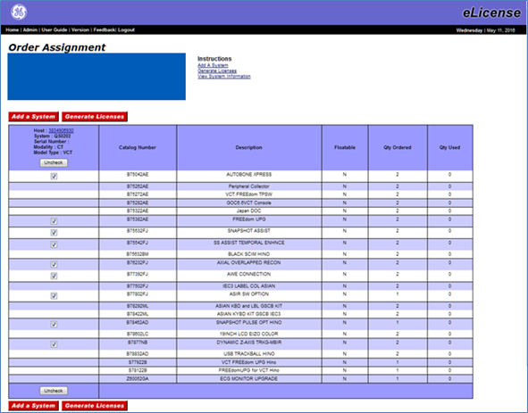 7. In the Order Assignment screen, click “Check All” button and “Generate Licenses” Button.