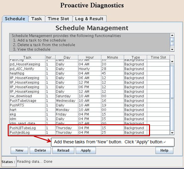 - Open command window, type "prodiags" and add new schedule of