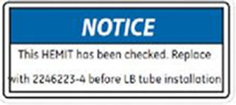 Notice Label - Replace before LB installation” on HEMIT Tank