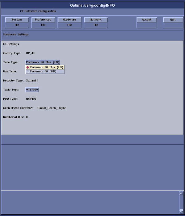Figure 8. Screen capture of reconfig for Tube type.