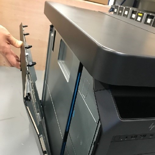 - Pull out the latch to release the host computer left side cover.