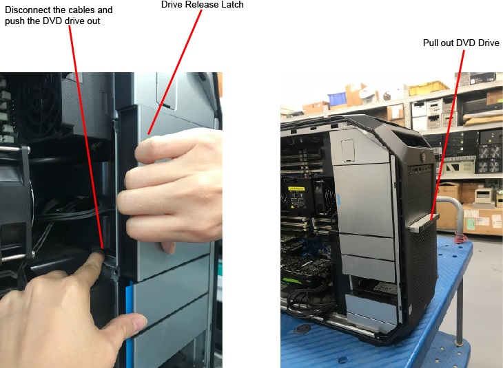 ③ DVD Drive ④ Empty ⑤ Empty ⑥ Image Desk ⑦ OS and App Disk - Disconnect the cables for DVD drive.