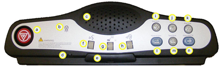 4. Volume Control (h). This dial controls the volume of the patient’s voice to the operator. Have assistant talk in Scan Room close to Gantry.