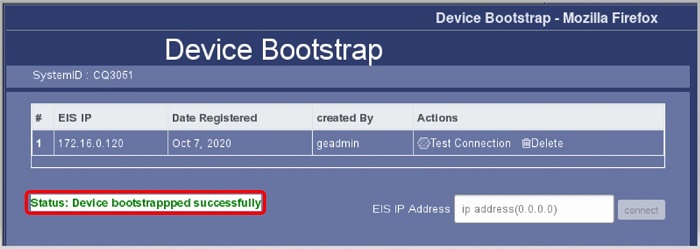 - Enter the “Edison private proxy IP (external-net1)” to EIS IP Address and click “Connect”note: Use the IP address recorded in the previous step.