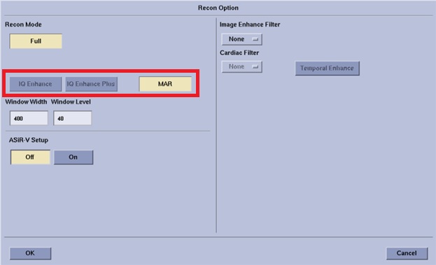 - Create New Exam using SmartMAR in PMR2 and execute the Scanning.Example: The "Recon Option" TAB, GUI example is shown below, and execute the Scanning.
