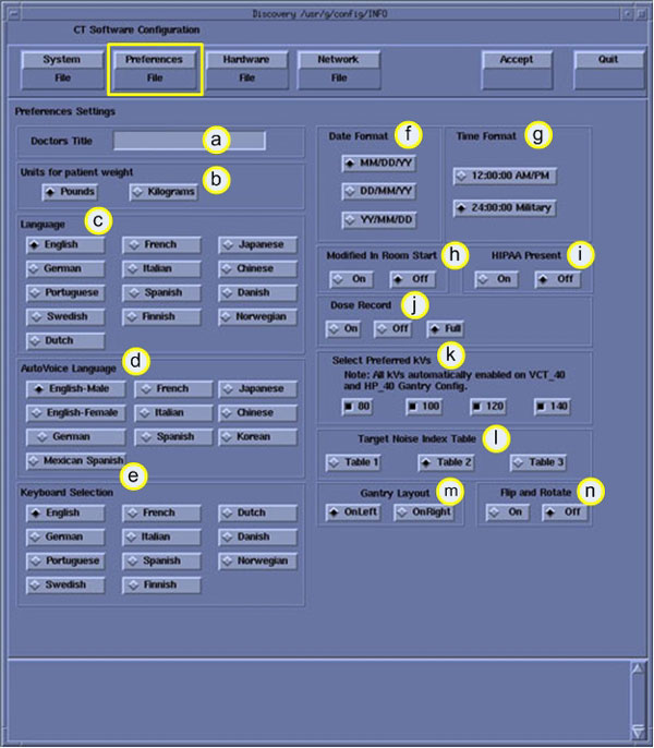 note:Effective Software Release 13HW38.x (Optima CT660) or later, Dose Information Display option is removed from Preference Tab. These software release introduced Dose Check functionality which no longer allows the disabling of display of Dose Information Display.