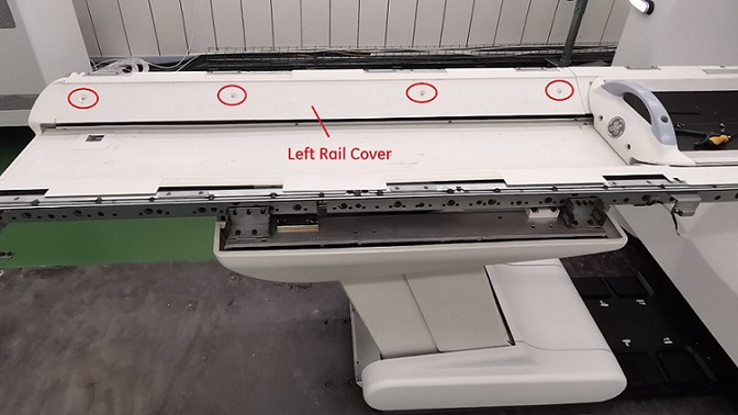 - Remove the left/right rail cover by unscrewing four cross-screws.