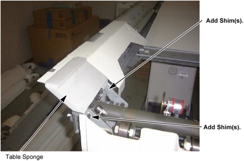 - Install the new sponge with shims of which number is recorded in previous step. Temporarily tighten the mounting bolts.