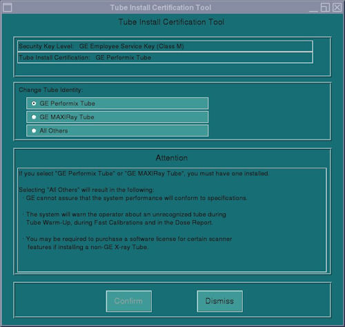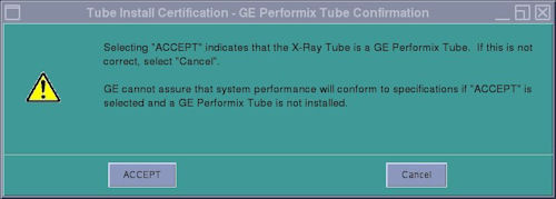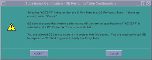 Figure 4. GE Medical Systems Tube Install Certification Screen