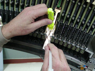 If the pad comes off on the front, it can be easily removed without any special process. If a pad comes off on the back rail of the detector however, a special process is required due to the limited amount of working space and the need to keep anything from getting into the detector collimator.