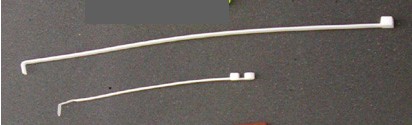 See illustration for examples of two sizes of ty-wraps. The longer ty-wrap works better than the shorter one, since the thicker ty-wrap does not bend as easily during use. You may need to cut off the rounded end to have a flat scraping surface.