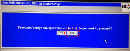 The disk configuration clearing needs to be performed by RAID control card WebBIOS utility.