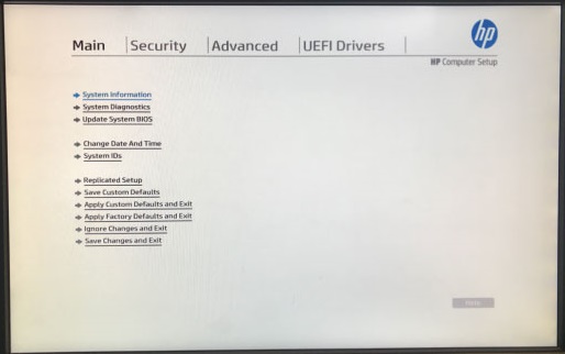 - In the Computer Setup (F10) Utility menu, the following headings are displayed: Main, Security, Advanced and UEFI Drivers.