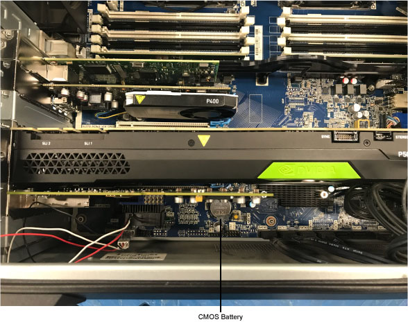 - Remove the GPU and DIP card to gain access to the CMOS battery