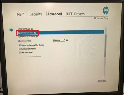 - Enter Computer Setup again, press F10 on keyboard when the HP Boot Screen appears.