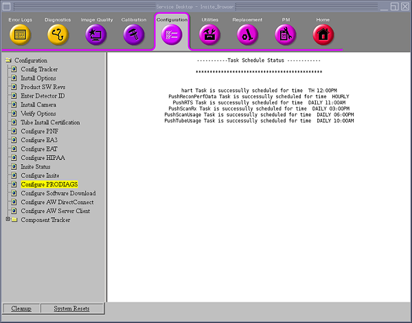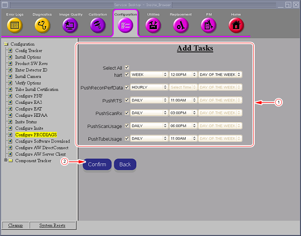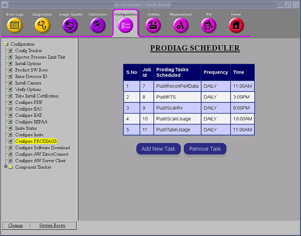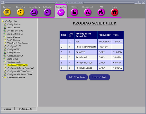 - Click Configure PRODIAGS link, all the prodiags tasks display.