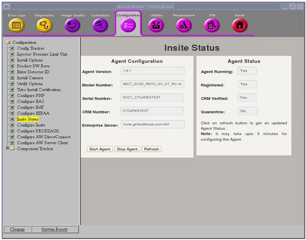 Click Start Agent button. Wait for 4 - 5 minutes and the Insite Status is displayed. Click Refresh button, if required.
