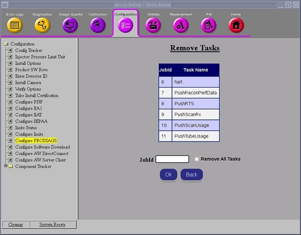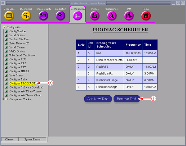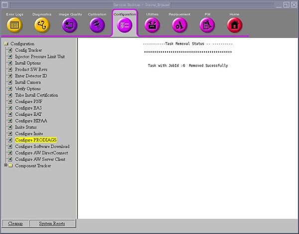 - Click Configure PRODIAGS to verify removal of the task(s).