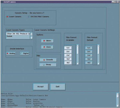 See Table 1 for some suggested settings for the AGFA camera. For other camera models, refer to the camera manufacturer’s conformance statement and consult with the camera FE.