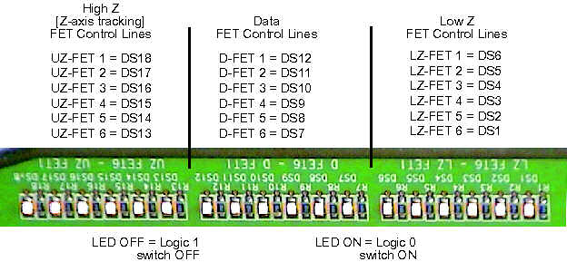Figure 2. DAS Control Board Layout - Reverse side, showing LEDs (at right)
