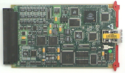 There are three connectors on the MDAS 16 DCB for normal operation: A TX optical cable connector for high speed serial data transmission to the slip ring, a RX optical cable connector for external loop-back testing, and a backplane connector for data and control signals to/from the Converter cards, signals from the Generator, RS232 interface to the Detector Heater Control Board (DHCB).