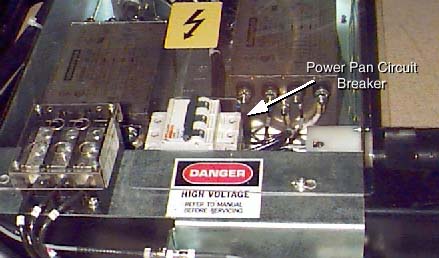 (For old Power Pan) The circuit breaker in the power pan, located at the rear of the gantry base, protects both the 170VDC and tilt drives (table and gantry respectively).