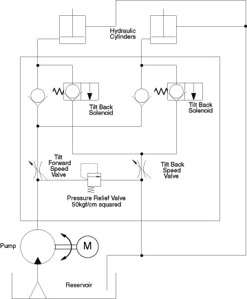 The hydraulic system has a pressure relief bypass valve, which is factory set to 50 kgf/cm squared. This hydraulic system is also self bleeding.