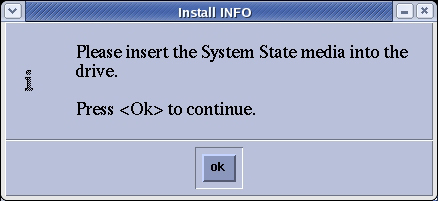 If applicable, select OK when the following message appears: System State Media Status: Please insert a DVD or MOD into the drive and press Save again.